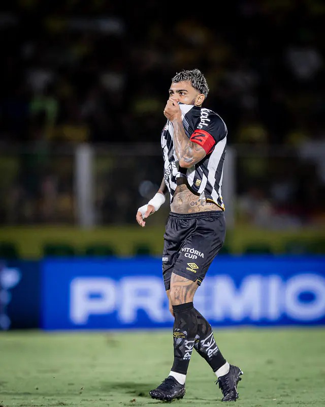 O Santos reagiu aos 35 minutos. Gabigol foi lançado por Oliva, aproveitou o vacilo da defesa e chutou no canto para diminuir o placar. Já nos acréscimos, o árbitro foi chamado ao VAR para revisar uma possível falta em Gabigol dentro da área e assinalou pênalti. Na cobrança, o próprio camisa 9 bateu com categoria e decretou o empate.