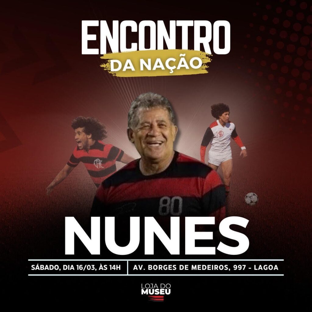 No próximo sábado (16), de 14h às 17h, preparem-se para um evento marcante na sede do Flamengo, na Gávea. O “Encontro da Nação Rubro-Negra” trará uma experiência única ao lado de Nunes, uma lenda do clube e eterno campeão mundial, no Museu Flamengo.