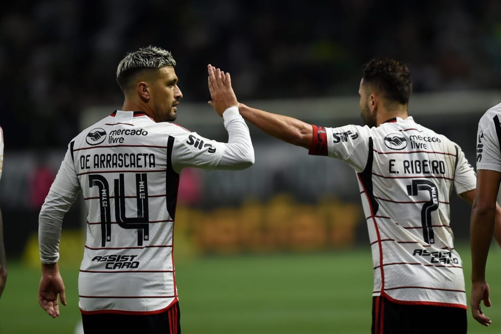 Palmeiras e Flamengo empataram por 1 a 1, neste sábado (8), pela 14ª rodada do Campeonato Brasileiro. O jogo, no Allianz Parque, contou com gols de Dudu e Arrascaeta.